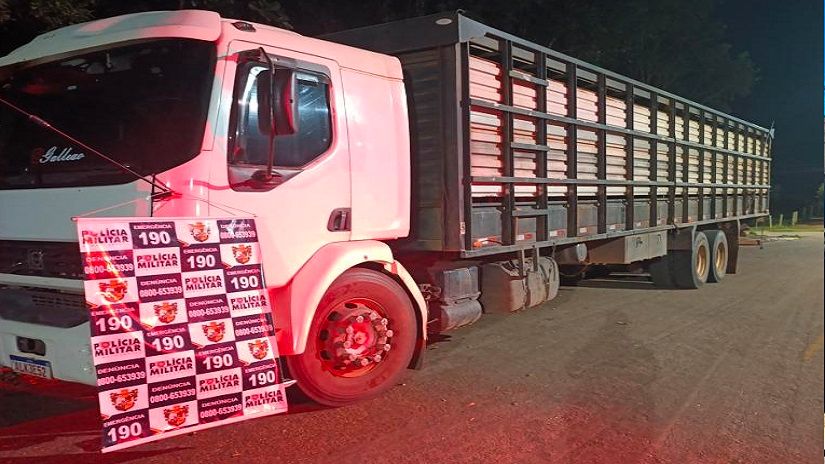 Durante o patrulhamento tático, os policiais militares receberam denúncia de que o condutor de um caminhão, suspeito de transportar carga de gado furtada, estaria transitando na rodovia, sentido ao município de Rondonópolis. As equipes saíram em busca do veículo e interceptaram-no às margens da rodovia MT-270.