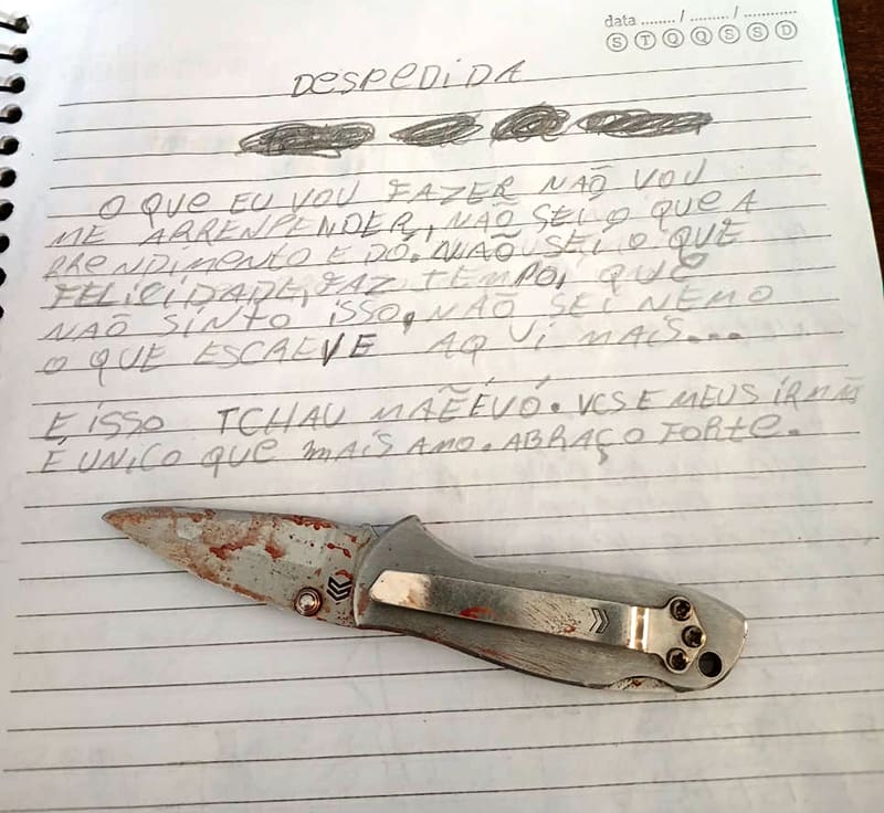 Os materiais apreendidos, como o canivete, o caderno e outros objetos relacionados ao fato, foram encaminhados à Perícia Oficial e Identificação Técnica (Politec), e a Polícia Civil aguarda agora a finalização dos laudos periciais, incluindo o exame de corpo de delito da vítima.