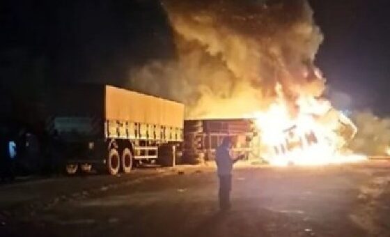 DA REDAÇÃO:LEIAMT Um motorista morreu carbonizado após um engavetamento envolvendo três carretas na rodovia BR-163, nas proximidades do posto Cerradão, em Matupá (686 km de Cuiabá),...