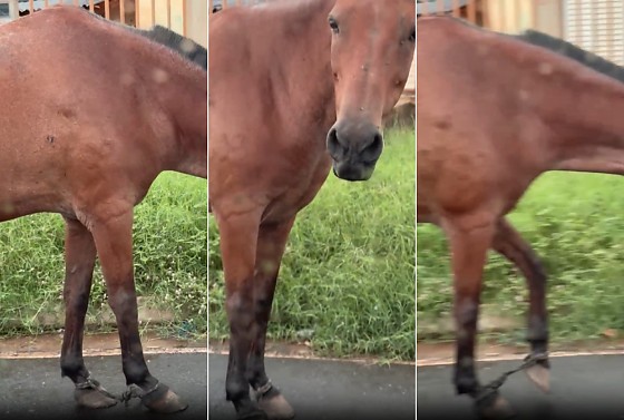 O caso veio à tona após denúncia de moradores da região, que registraram o animal em vídeo circulando pela rua com extrema dificuldade para andar. Nas imagens, é possível ouvir o morador que grava o vídeo indignado com a situação. “Como que faz um negócio desse aqui? Pelo amor de Deus, isso tem que ser denunciado. Não tem lógica. Se não tem condições de criar o animal, larga mão do animal”, diz.