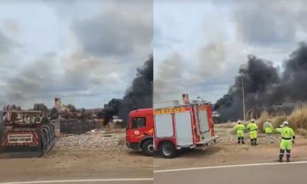 As chamas que atingiram o veículo rapidamente se alastraram pela vegetação seca na margem da estrada.