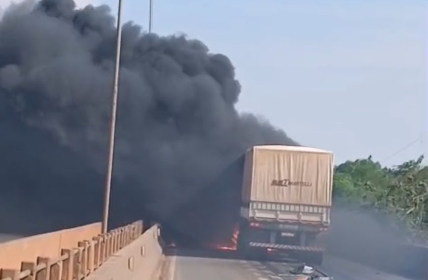 Na tarde desta quarta-feira (29), por volta das 14h39, uma colisão entre três carretas provocou um incêndio em cima da ponte do km 201 da BR-364, em Rondonópolis. A Nova Rota do Oeste, concessionária responsável pela rodovia, informou que a pista — que é duplicada — precisou ser totalmente interditada nos dois sentidos por conta do intenso volume de fumaça que comprometeu a visibilidade dos motoristas.