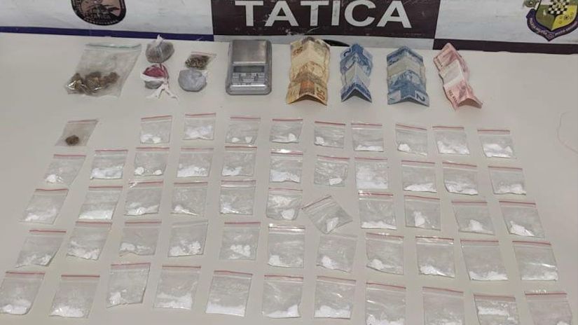 Após breve perseguição, o homem foi encontrado dentro de uma casa. Na verificação da sacola que ele transportava, que havia abandonado na pia da cozinha do imóvel, os policiais localizaram 53 porções de cocaína, uma balança de precisão pequena e quantia em dinheiro.