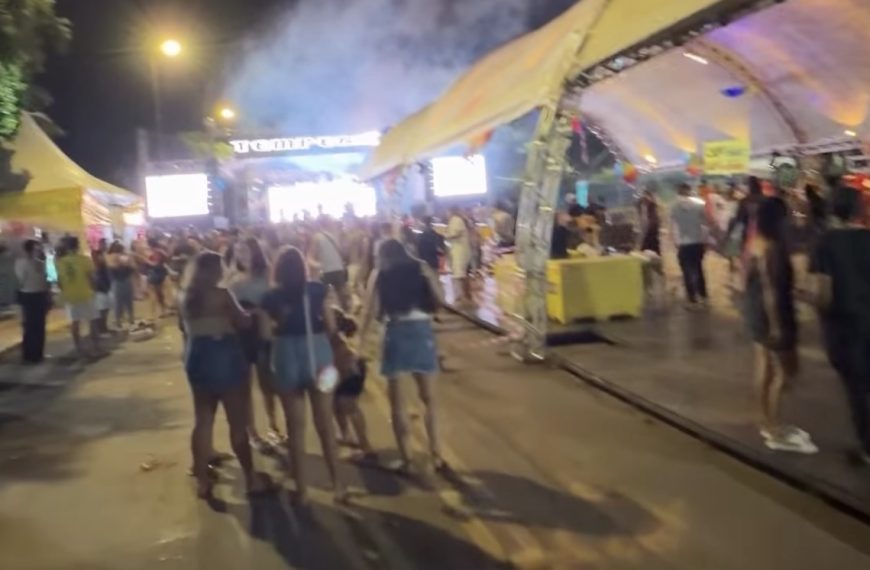 A Polícia Militar prendeu um homem após ele ameaçar foliões com uma faca durante o Rondon Folia, na madrugada deste sábado (14), em Rondonópolis-MT.