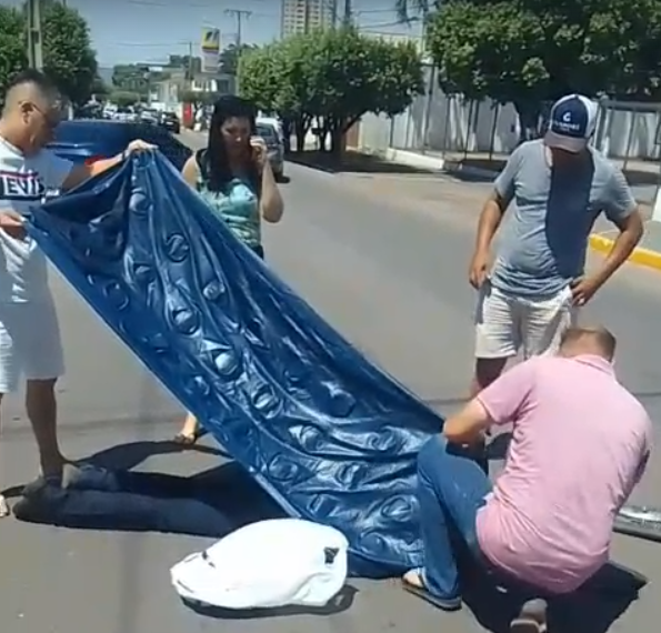 Vídeos e fotos começaram a circular logo após o acidente, mostrando a movimentação de curiosos e moradores tentando ajudar enquanto a vítima aguardava a equipe médica.