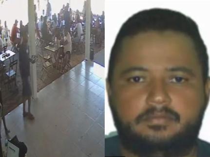 Depois do crime, ele fugiu em veículo Fox preto com placas KAT2G81. Crime foi registrado pelas câmeras do local. Polícia segue em busca do assassino.