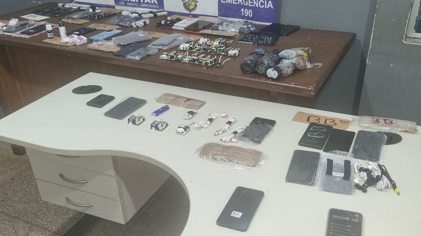 Neste domingo (18.01), a Polícia Militar e a Polícia Penal em Rondonópolis realizaram a apreensão de celulares e outros apetrechos eletrônicos, que tinham como destino a Penitenciária Major Eldo de Sá Correia, a Mata Grande. As equipes foram acionadas por funcionários da empresa terceirizada que fornece a alimentação à unidade, que perceberam materiais suspeitos em sacos plásticos em um dos caminhões de entrega.