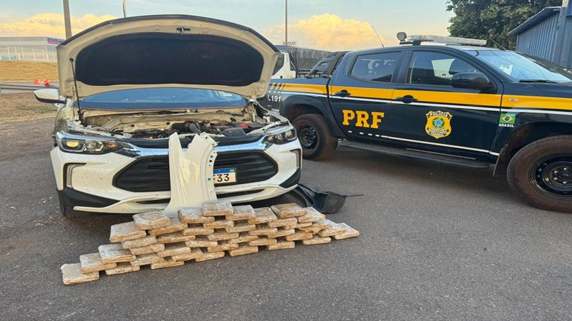 A equipe abordou um veículo Chevrolet/Tracker, de cor branca, que transitava pela rodovia. Durante a inspeção, os policiais localizaram um compartimento oculto, especificamente preparado e dissimulado, na região do painel corta-fogo, com acesso pelo para-lama dianteiro direito. No interior, foram encontrados 40 tabletes da droga, que após pesagem oficial pela Politec totalizaram 44,5 kg.