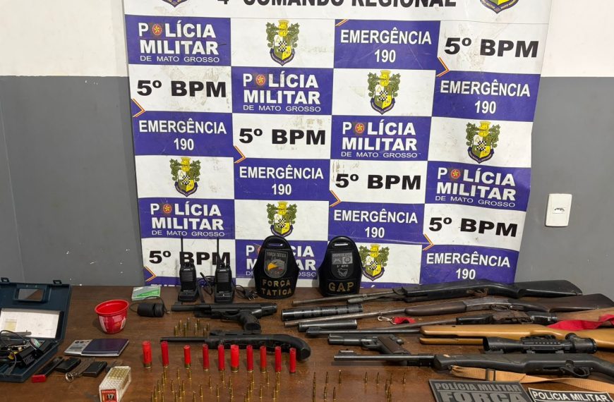 A Polícia Militar prendeu um homem suspeito de atuar como armeiro de facção criminosa, na tarde desta terça-feira (17), por volta das 17h30, na zona rural de Rondonópolis. A ação resultou na apreensão de várias armas de fogo, munições e equipamentos.